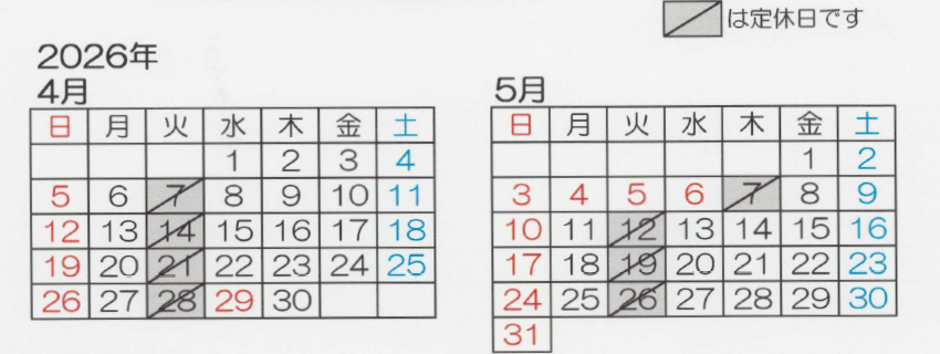 2026年ゴールデンウィーク期間中の営業について、下記の通りお知らせいたします。